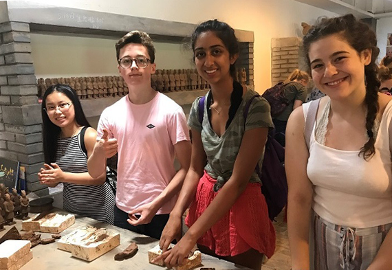 Soon it was time to board a high-speed train for Xi’an, one of the four ancient capital cities, for a few more days of cultural and language immersion. During their stay in Xi’an (population: approximately 12 million), the students from Blake were able to more fully explore their research topics of choice, as Xi’an offered plenty of chances for firsthand encounters with contemporary Chinese culture. The group strolled through the Muslim Quarter, a vibrant Muslim-Chinese community hub, where they sampled various street foods and learned about the local Muslim community. The following day featured a scenic nine-mile bike ride atop the Ancient City Wall, an architectural masterpiece. Students were awed by the Shaanxi History Museum and the Terracotta Warriors, an archeological excavation of Emperor Qin Shi Huang’s sculpture armies. Finally, they enjoyed a Tang Dynasty Cultural Performance while enjoying a traditional Chinese dumpling banquet. The highlight of Xi’an, though, for many students, was engaging with the local university students, practicing their Chinese language skills and making new friends.